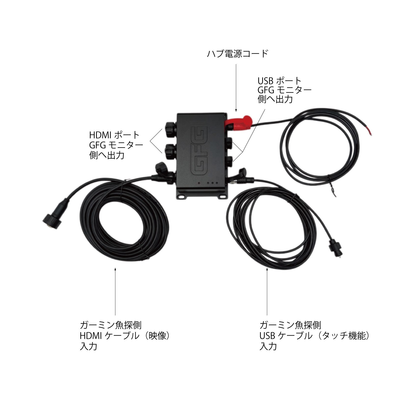 用途:1台のガーミン魚探本体よりGFGモニター2台ヘ同時ミラーリング させる事ができる分配機です。又、FB(フライングブリッジ)艇や50FtクラスのクルーザーボートのUSB、HDMIケーブルの延長コード使用時の中継器としてもご利用頂けます。