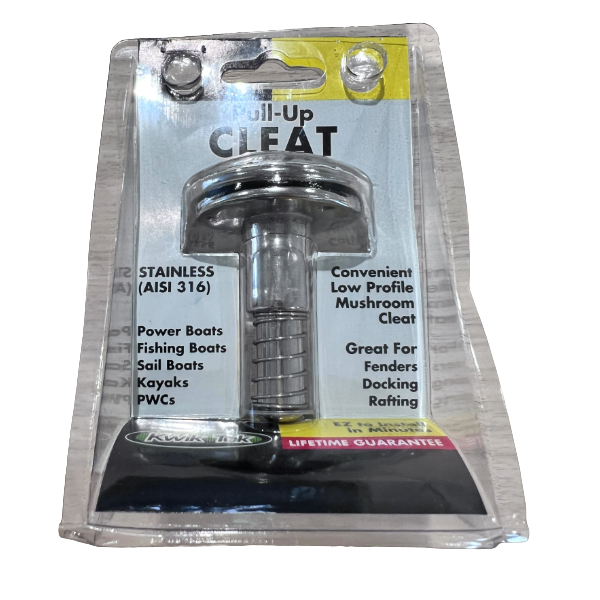 手で引っ張りあげて90°ひねると固定ができるタイプ(最後の写真)のステンレス素材のクリートです。