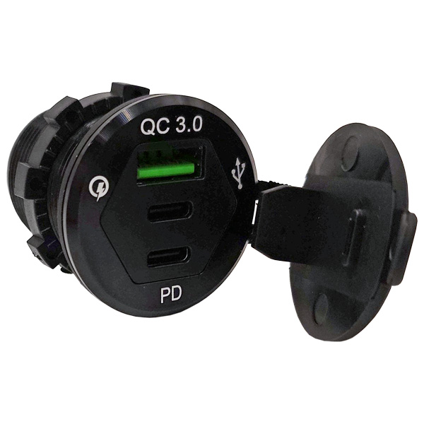 USBパワーソケット タイプA(QC3.0)x1 +タイプC(PD)x2 防水ラバーキャップ付き (インジケーター・イルミネーションライト無しモデル)