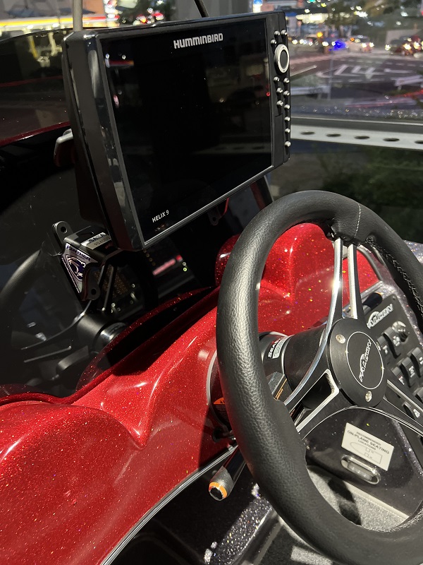 コンソールのダッシュパネルに埋めこむ事よりもコチラのマウントを取付ける事によって魚探の架台を自由に角度調整が出来る為、お好みの角度調整により視認性がよくなります。