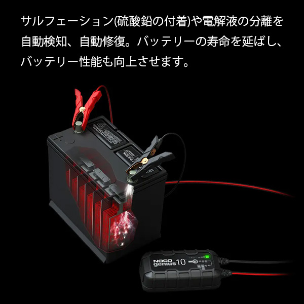 | 対応バッテリー | 自動車用、船舶用、ディープサイクル用鉛蓄電池(液式、ゲル式、AGM式、メンテナンスフリー) |
