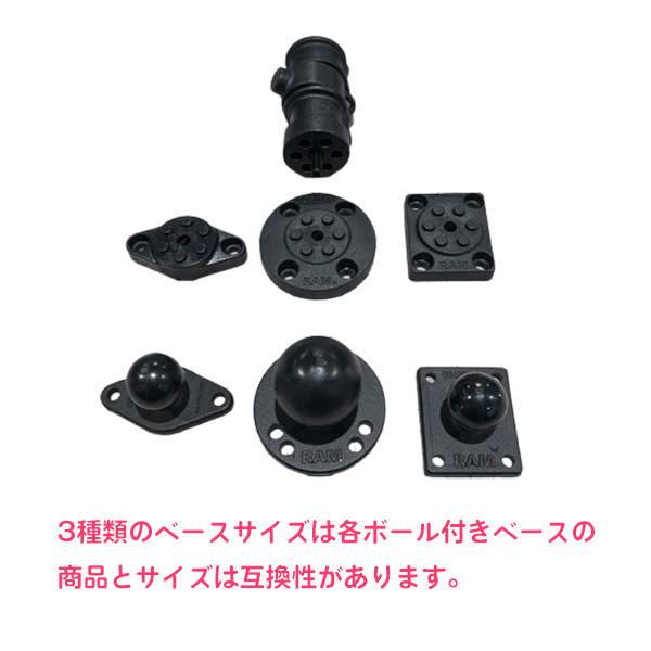 3種類のベースは強固な物でロッドホルダーを使用し、重たい釣竿や1.5"ボールマウントでの魚探にも使用出来ます。