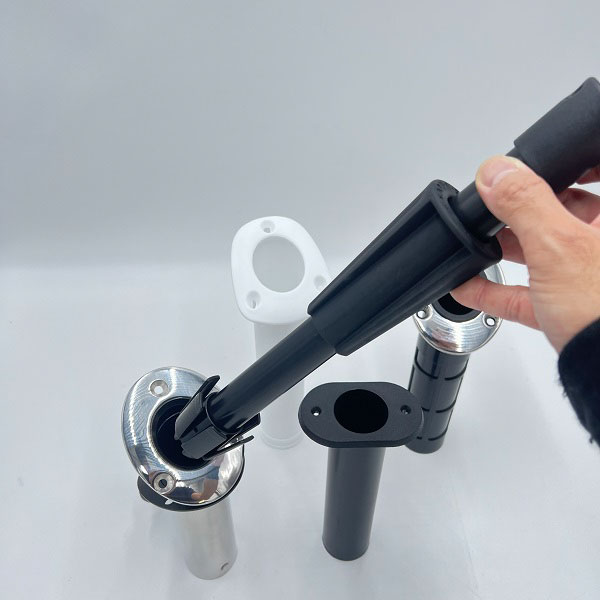 カヤック、釣りなどのボートにある埋込式ロッドホルダー内に本製品を差込み、