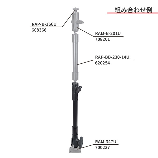 ◇RAM® MOUNTS / 14" PVC Pipe Extension with B Size & C Size Socket Arms / #RAP-CB-201-14U