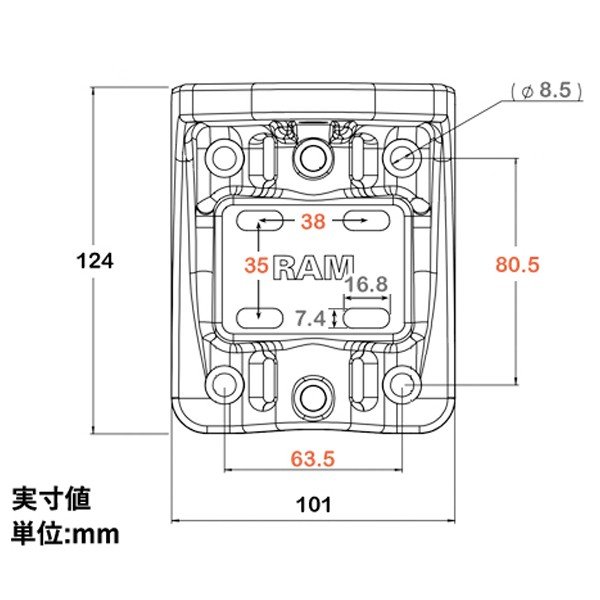 取付ネジ穴径:8.5mm×4ヶ所(ピッチ縦80.5×横63mm)