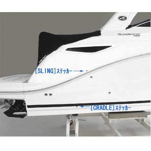ボートを船台へ乗せる際に便利な船台アーム位置の目印用ステッカーです。