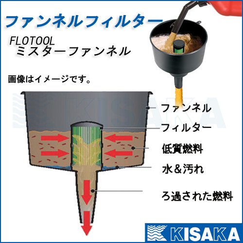 燃料給油時にファンネルフィルターをジョウゴ(漏斗)として使用すると、燃料内のゴミや水が燃料タンク内への混入を軽減します。