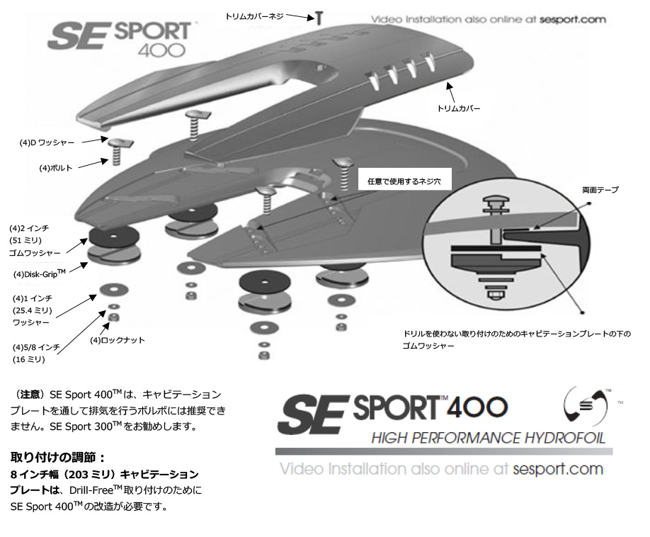 穴あけ加工不要 ハイドロホイル スタビライザー SE SPORTS 400 グレー
