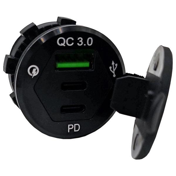 USBパワーソケット タイプA(QC3.0)x1 +タイプC(PD)x2 防水ラバーキャップ付き (インジケーター・イルミネーションライト無しモデル)