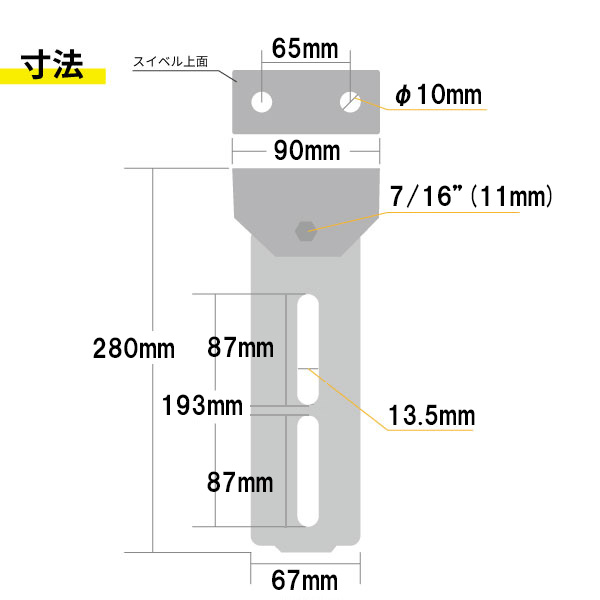 ・スイベル側 内径10mm × 2ヶ所(センター間65mm)