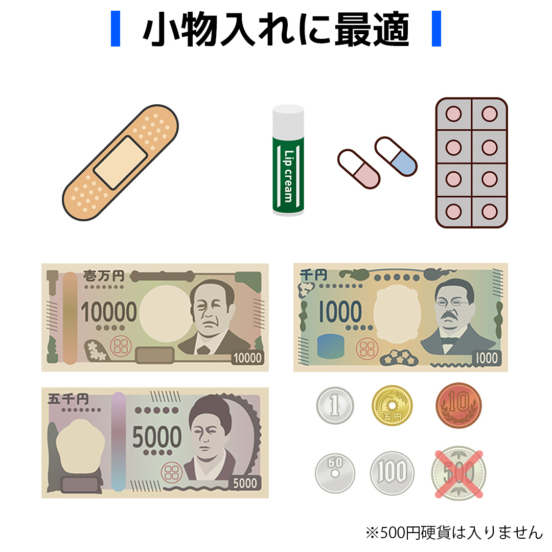 収納物の目安:紙幣10枚、コイン約40枚(※500円硬貨は入りません)