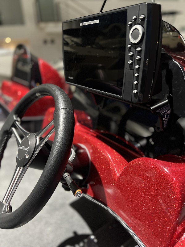 コンソールのダッシュパネルに埋めこむ事よりもコチラのマウントを取付ける事によって魚探の架台を自由に角度調整が出来る為、お好みの角度調整により視認性がよくなります。