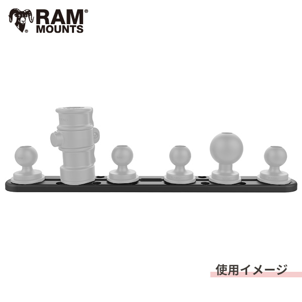 RAMオリジナルのトラックマウントを使用した、複数のデバイスを固定可能なレール式のマウントシステムです。