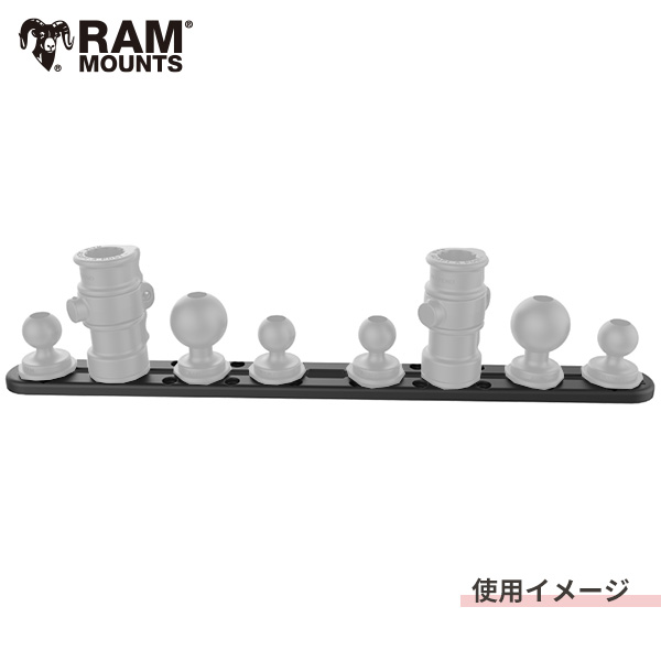 RAMオリジナルのトラックマウントを使用した、複数のデバイスを固定可能なレール式のマウントシステムです。