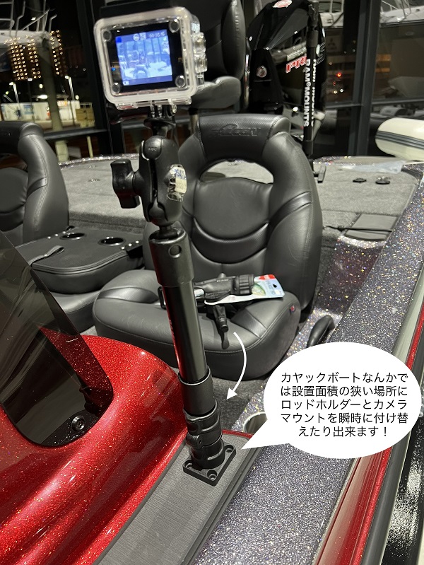 3種類のベースは強固な物でロッドホルダーを使用し、重たい釣竿や1.5"ボールマウントでの魚探にも使用出来ます。