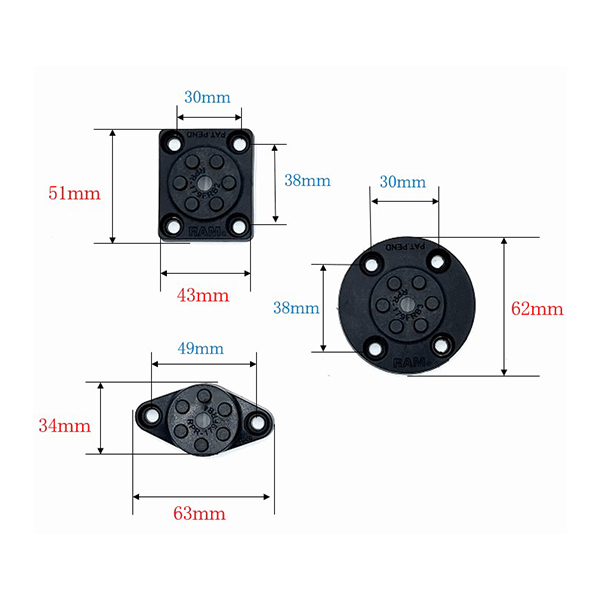 ◆各ベースサイズ:①サークル型:63mm ②四角型:43mm x 51mm