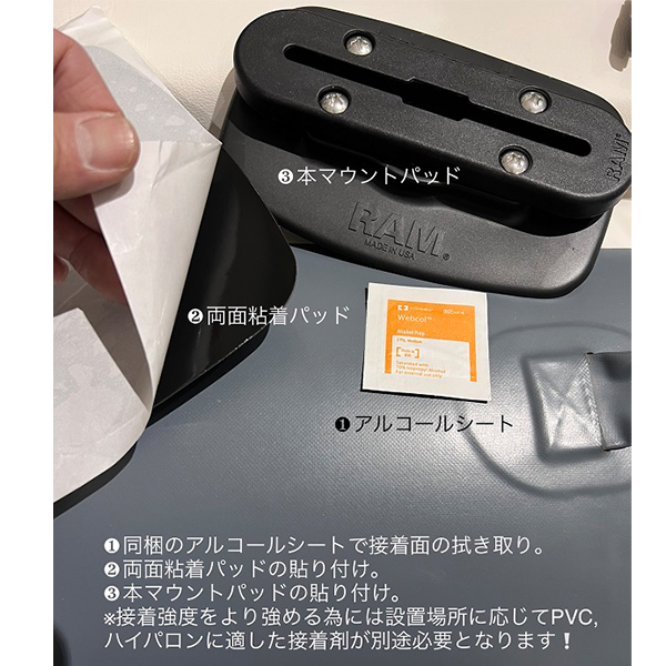 ◆付属品:両面粘着パッド(3M社VHB)各マウント取付け金具付き