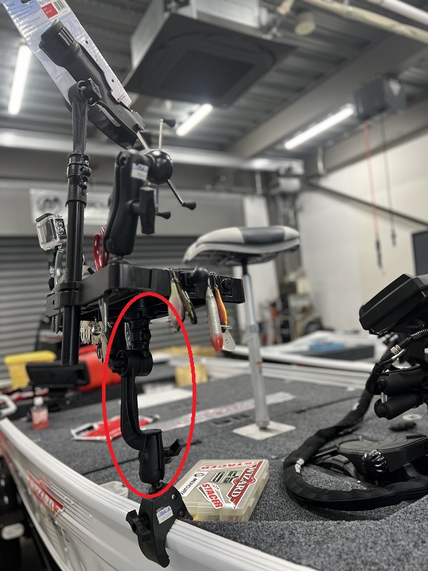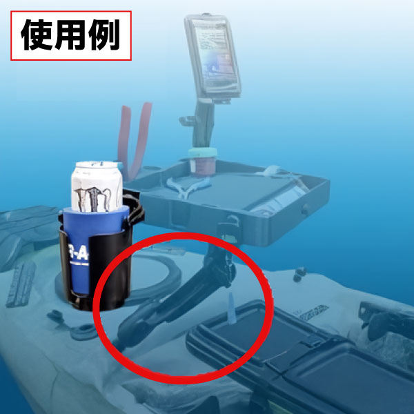360度前後回転のラチェット機構と、船体側のベースには1.5"ボール用のソケット付きで前後左右へ自由な角度調整により最適な角度に設定する事が出来ます。