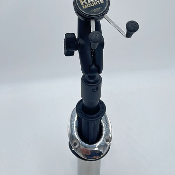 カヤック、釣りなどのボートにある埋込式ロッドホルダー内に本製品を差込み、
