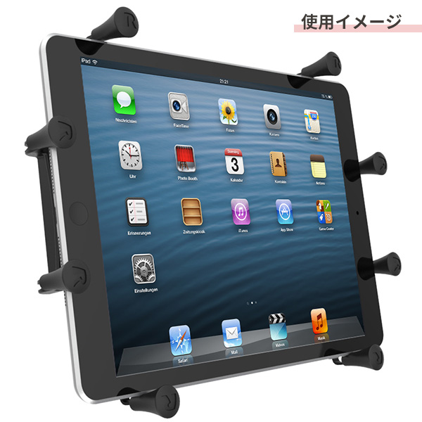 1インチのダブルソケットアームと、ユニバーサル AMPSホールパターンを備えた 2つの2.5インチ直径の丸型ボール ベース、および9~10インチのタブレット用の RAM X-Grip ユニバーサル ホルダーで構成されています。