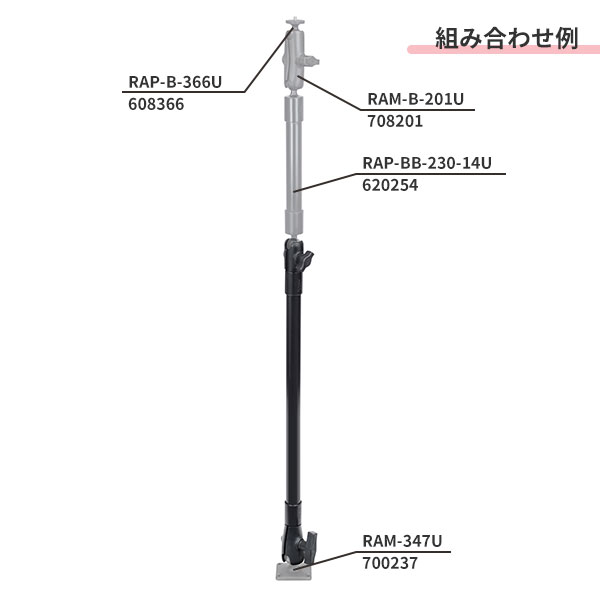 ◇RAM® MOUNTS / 24" PVC Pipe Extension with B Size & C Size Socket Arms / #RAP-CB-201-24U