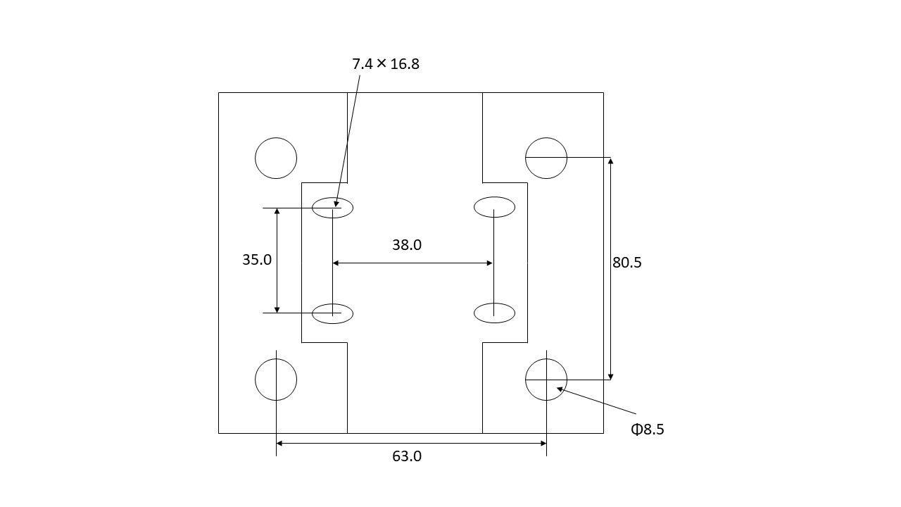 取付ネジ穴径:8.5mm×4ヶ所(ピッチ縦80.5×横63mm)