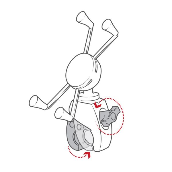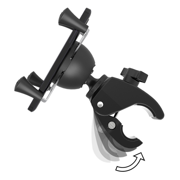 グリップ部分では、ゴム製のキャップが付いたX型デザインのスプリング式アームが、デバイスをしっかりとホールドします。屋外の使用に備え、デバイスのホールド力を強化するラバーバンドが付属しています。